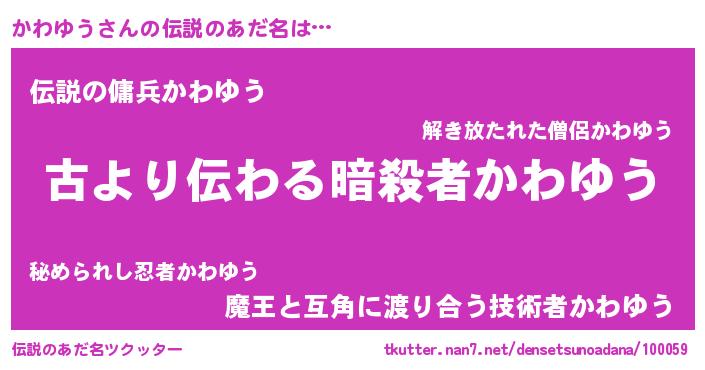 | 女子向けラノベタイトル風あだ名 | 『かわゆうの契約王妃』『闇のかわゆう』 |