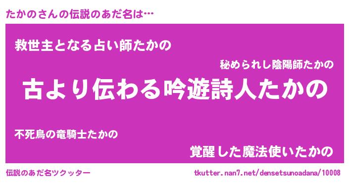 | 意味不明あだ名 | 『永久保存たかの』『つくし科たかの属』 |