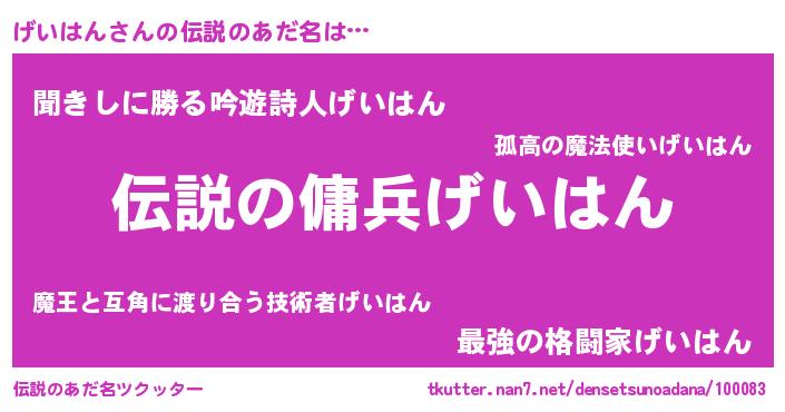 | ヒーロー風カッコイイあだ名 | 『スーパーゲイハン』『ネオゲイハン』 |