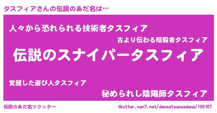 | 胡散臭い通販商品みたいなあだ名 | 『必ず成功する霊験あらたかなお札…その名も「タスフィア」』 |