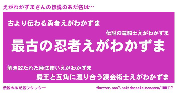 | 意味不明あだ名 | 『えがわかずまフォーエバー』 |