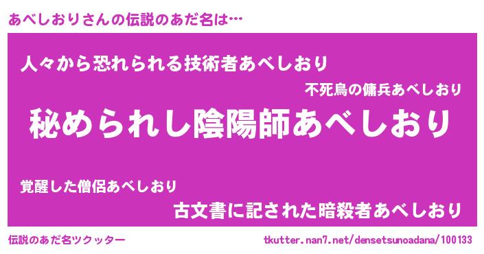 | 肩書あだ名 | 『あべしおりプロデューサー』 |