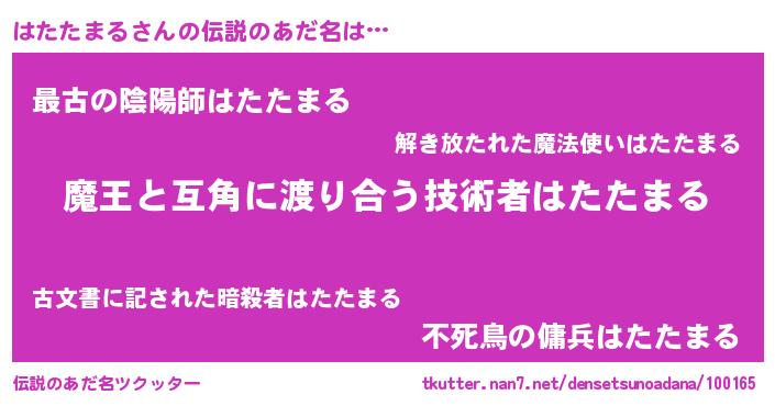 | 胡散臭い通販商品みたいなあだ名 | 『お金では代えられないマグネット磁石…その名も「はたたまる」』 |