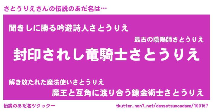 | ファンタジー風あだ名 | 『ゼサトトゥ』『サトフェル』 |