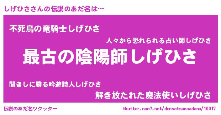 | 意味不明あだ名 | 『しげひさフォーエバー』『自称しげひさ』 |