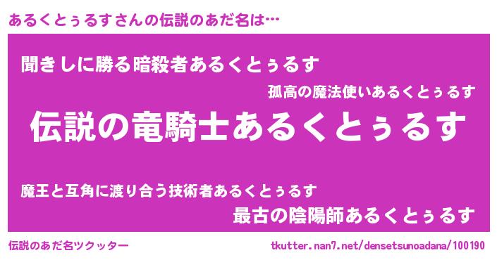 | 男性向けラノベタイトル風あだ名 | 『あるくとぅるすの憂鬱』 |