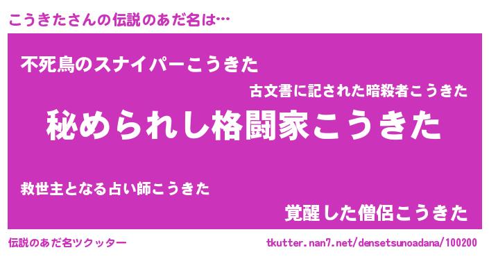 | ファンタジー風あだ名 | 『エターナルコウキター』『ゼコウトゥ』 |