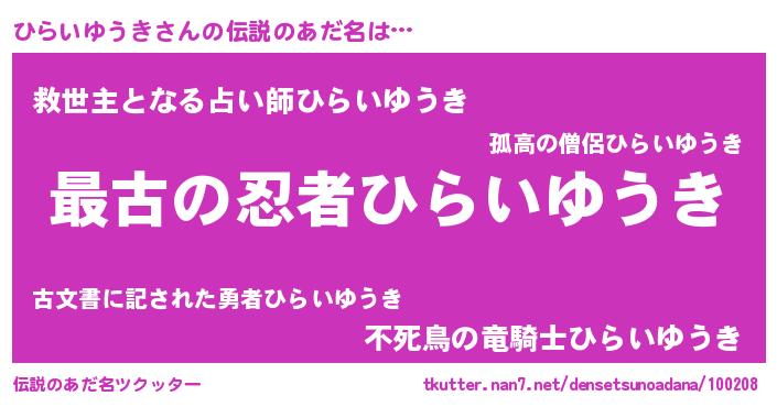 | ファンタジー風あだ名 | 『エターナルヒライユウキー』 |