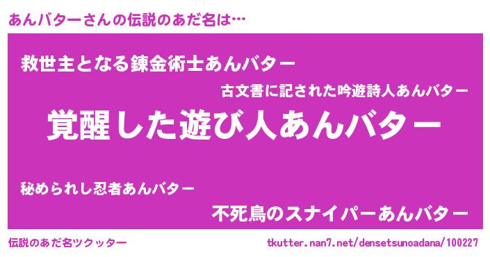 | 意味不明あだ名 | 『とにかく怪しいあんバター』 |
