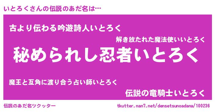 | ヒーロー風カッコイイあだ名 | 『仮面イトダー』『ウルトラいとろくマン』 |