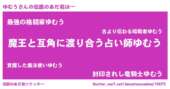 | ヒーロー風カッコイイあだ名 | 『愛の使者ゆむう』『ウルトラゆむうマン』 |