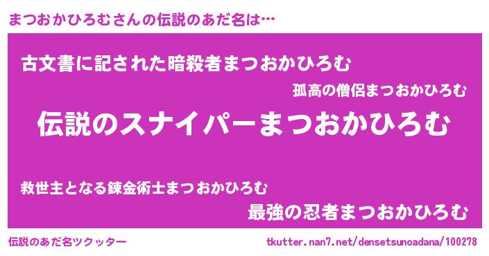 | 胡散臭い通販商品みたいなあだ名 | 『必ず成功する霊験あらたかなお札…その名も「まつおかひろむ」』 |
