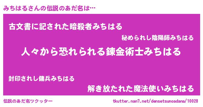 | 意味不明あだ名 | 『住所不定無職みちはる(84歳)』 |