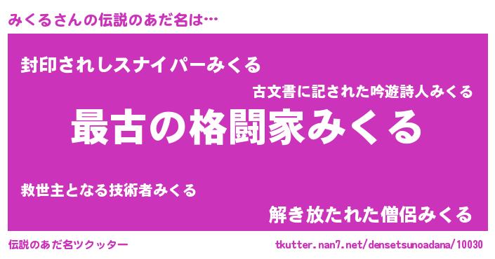 | ヒーロー風カッコイイあだ名 | 『ウルトラみくるマン』『スーパーミクル』 |