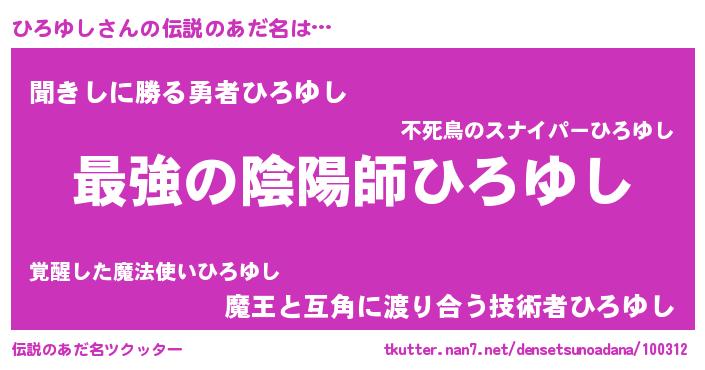 | ヒーロー風カッコイイあだ名 | 『ウルトラひろゆしマン』『ネオヒロユシ』 |