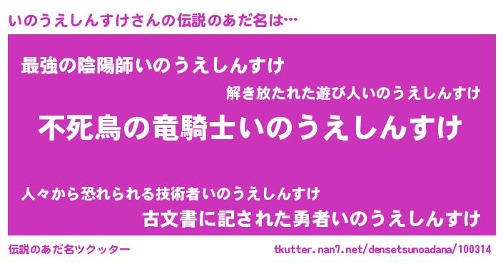 | 男性向けラノベタイトル風あだ名 | 『いのうえしんすけの憂鬱』 |