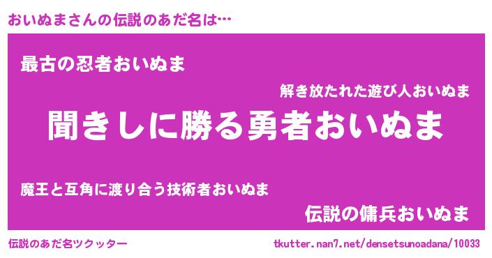 | ヒーロー風カッコイイあだ名 | 『ネオオイヌマ』『ウルトラおいぬまマン』 |