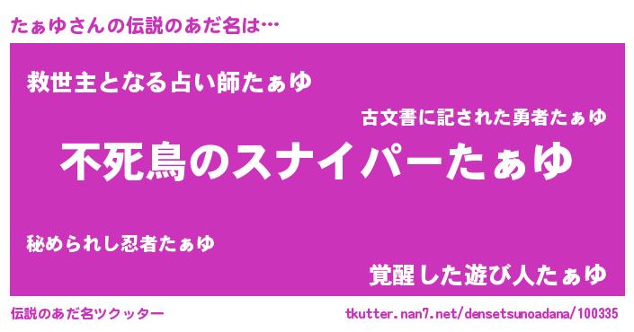| 意味不明あだ名 | 『住所不定無職たぁゆ(93歳)』『自称たぁゆ』 |