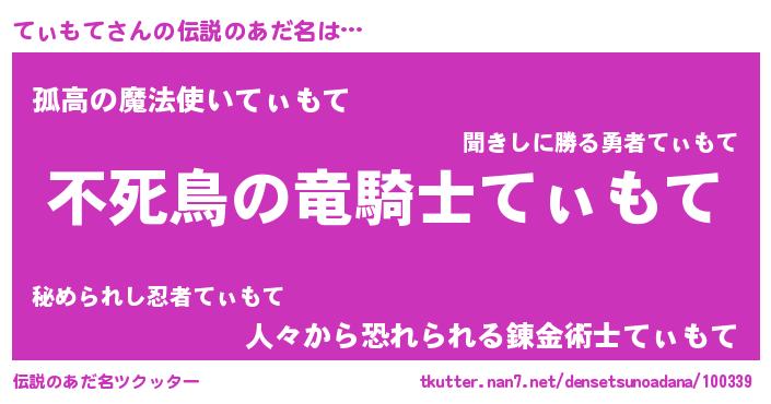 | 男性向けラノベタイトル風あだ名 | 『転生したらてぃもてだった件』 |
