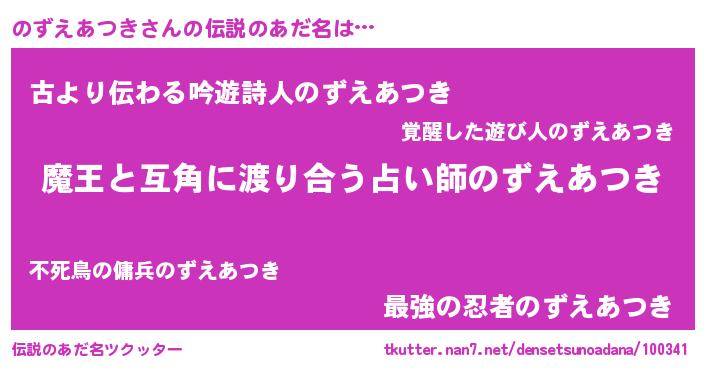 | 男性向けラノベタイトル風あだ名 | 『この素晴らしい世界にのずえあつきを!』 |