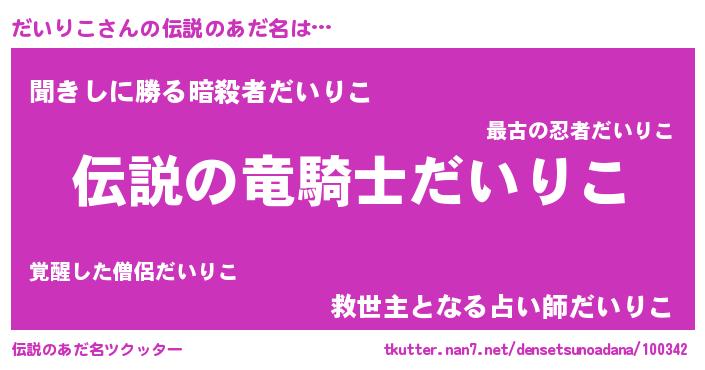 | 胡散臭い通販商品みたいなあだ名 | 『必ず成功するブレスレット…その名も「だいりこ」』 |