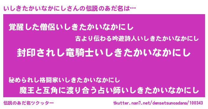 | 胡散臭い通販商品みたいなあだ名 | 『億万長者になれるブレスレット…その名も「いしきたかいなかにし」』 |