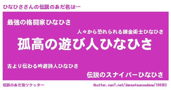 | 意味不明あだ名 | 『とにかく怪しいひなひさ』 |