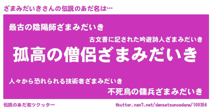 | 胡散臭い通販商品みたいなあだ名 | 『信頼と実績のネックレス…その名も「ざまみだいき」』 |