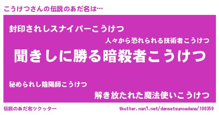 | 胡散臭い通販商品みたいなあだ名 | 『絶対に幸福をもたらす健康食品…その名も「こうけつ」』 |