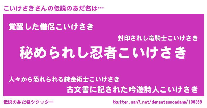 | 男性向けラノベタイトル風あだ名 | 『コイケサキスレイヤー』 |