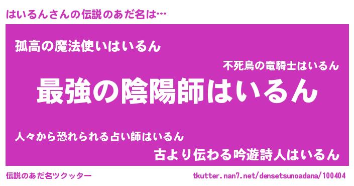 | 男性向けラノベタイトル風あだ名 | 『はいるんに滅ぼされるだけの簡単なお仕事です』 |