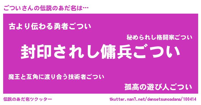 | ヒーロー風カッコイイあだ名 | 『仮面ゴツダー』『スーパーゴツイ』 |