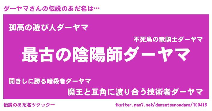| ヒーロー風カッコイイあだ名 | 『ウルトラダーヤママン』『暗黒騎士ダー』 |