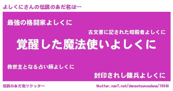 | ヒーロー風カッコイイあだ名 | 『最強戦士ヨシクニ』『天弓騎士ヨシ』 |