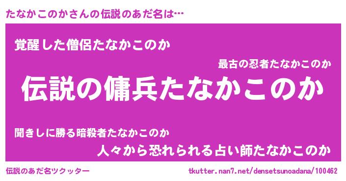 | 男性向けラノベタイトル風あだ名 | 『たなかこのかの憂鬱』 |