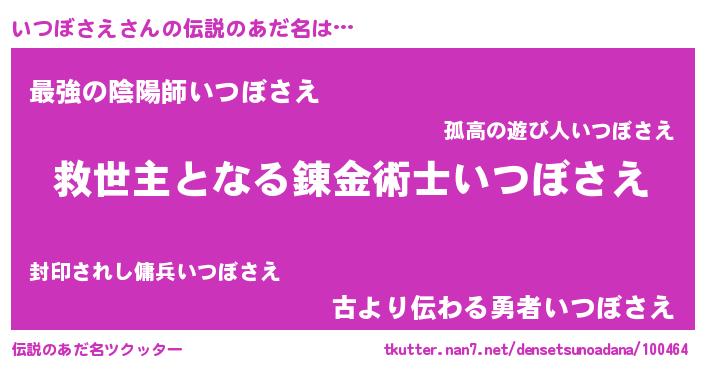| ヒーロー風カッコイイあだ名 | 『慈愛の使者いつぼさえ』『天弓騎士イツ』 |