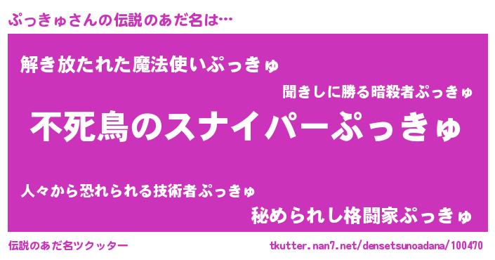 | ヒーロー風カッコイイあだ名 | 『スーパープッキュ』『黄金騎士プッ』 |