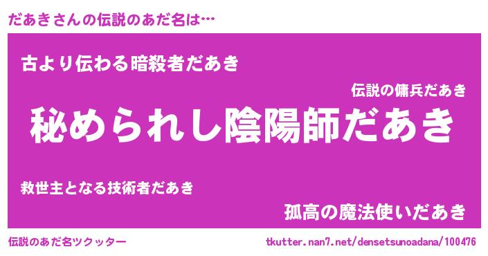 | ファンタジー風あだ名 | 『エターナルダアキー』『ダアディッシュ』 |
