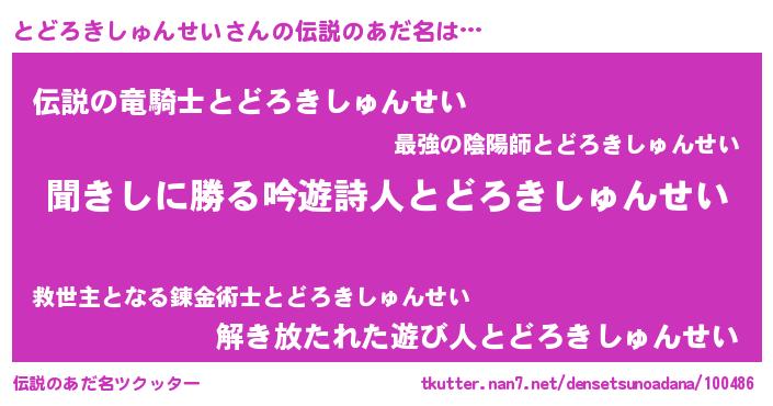 | 胡散臭い通販商品みたいなあだ名 | 『ガンによく効く高麗人参…その名も「とどろきしゅんせい」』 |