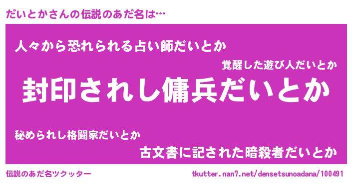 | 意味不明あだ名 | 『住所不定無職だいとか(39歳)』 |