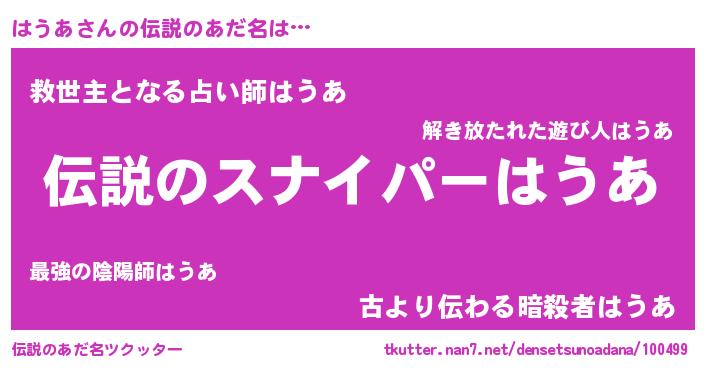 | ヒーロー風カッコイイあだ名 | 『ウルトラ戦士ハウア』『スーパーハウア』 |