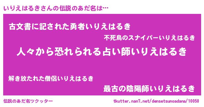 | ヒーロー風カッコイイあだ名 | 『正義の使者いりえはるき』 |