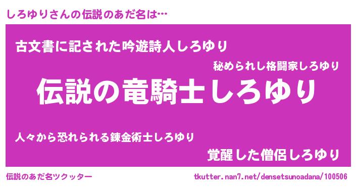 | 胡散臭い通販商品みたいなあだ名 | 『必ず成功するブレスレット…その名も「しろゆり」』 |