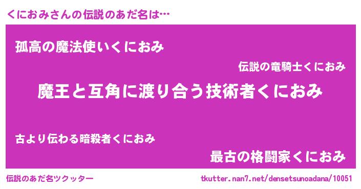 | 男性向けラノベタイトル風あだ名 | 『転生したらくにおみだった件』 |