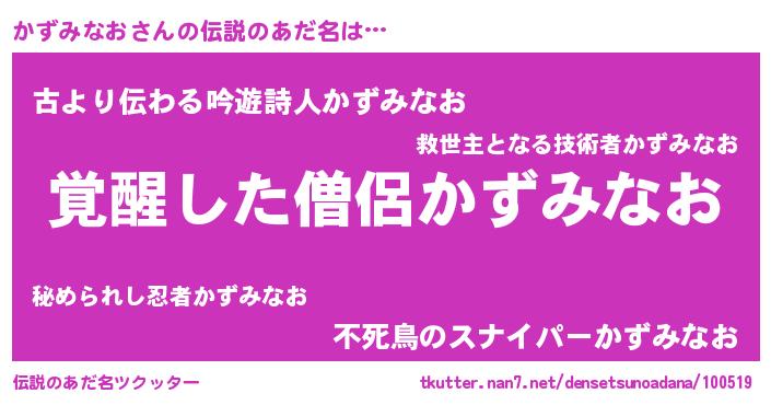 | 意味不明あだ名 | 『住所不定無職かずみなお(43歳)』 |