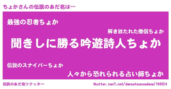 | 意味不明あだ名 | 『永久保存ちょか』『ちょかフォーエバー』 |