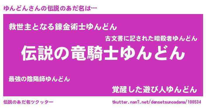 | 女子向けラノベタイトル風あだ名 | 『(仮)ゆんどんのやんごとなき事情』 |