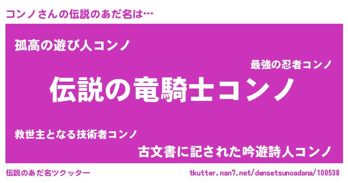 | ヒーロー風カッコイイあだ名 | 『スーパーコンノ』『天弓騎士コン』 |