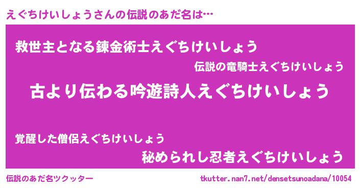| ヒーロー風カッコイイあだ名 | 『ネオエグチケイショウ』『仮面エグダー』 |