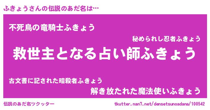 | ヒーロー風カッコイイあだ名 | 『慈愛の使者ふきょう』『仮面フキダー』 |